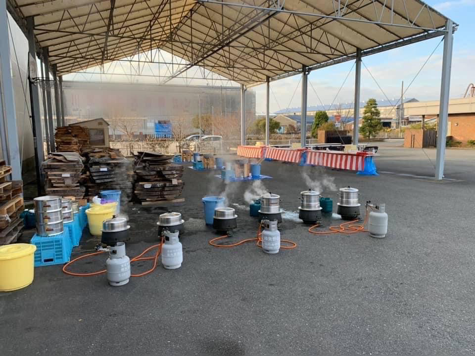 - もち米を蒸して準備