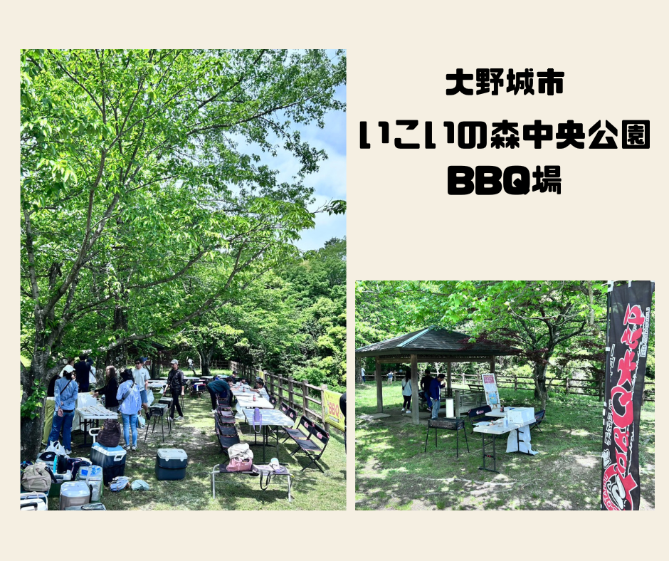 📍大野城市:大野城いこいの森中央公園BBQ場 広大な自然と設備が整った公園で、スポーツイベント後の打ち上げに最適🌲