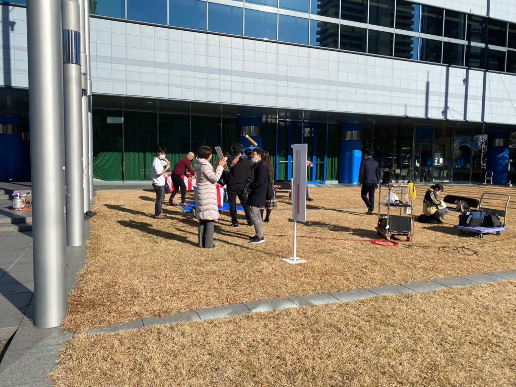 今回放送された様子では、会社敷地内の芝生広場に特設会場を設営。