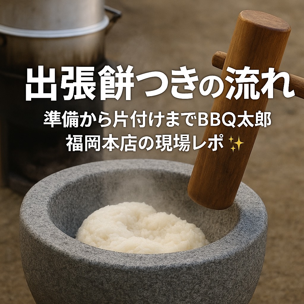 今回は、実際にBBQ太郎福岡本店が出張餅つきを行うときの“リアルな流れ”を、現場の裏側までぜ〜んぶご紹介します!