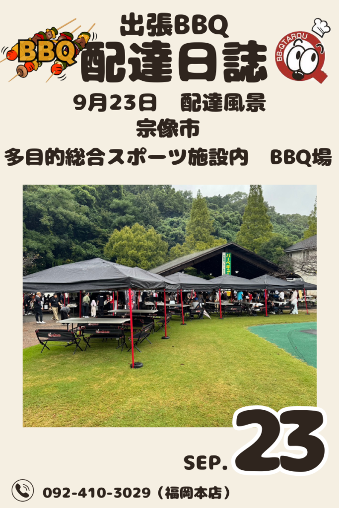 今回の宗像市での配達日誌では、スポーツ施設内での大規模BBQをサポートさせていただきました🍖✨