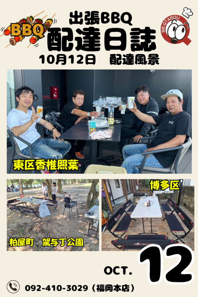 秋晴れの空の下、BBQ太郎福岡本店では3件の出張BBQに行ってまいりました!