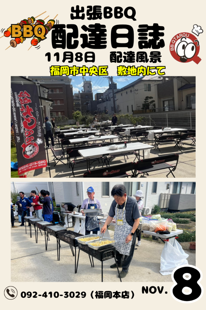 11月8日(土)は秋晴れの空の下、3件の出張BBQを同時開催いたしました!☀️