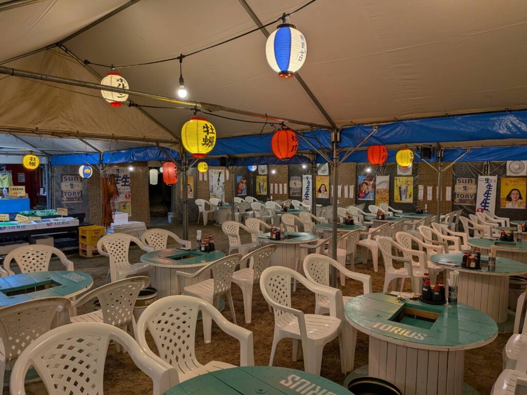 11月現在、北海道産・三重県産のぷりっぷりの牡蠣をその場で焼いて楽しめます🔥