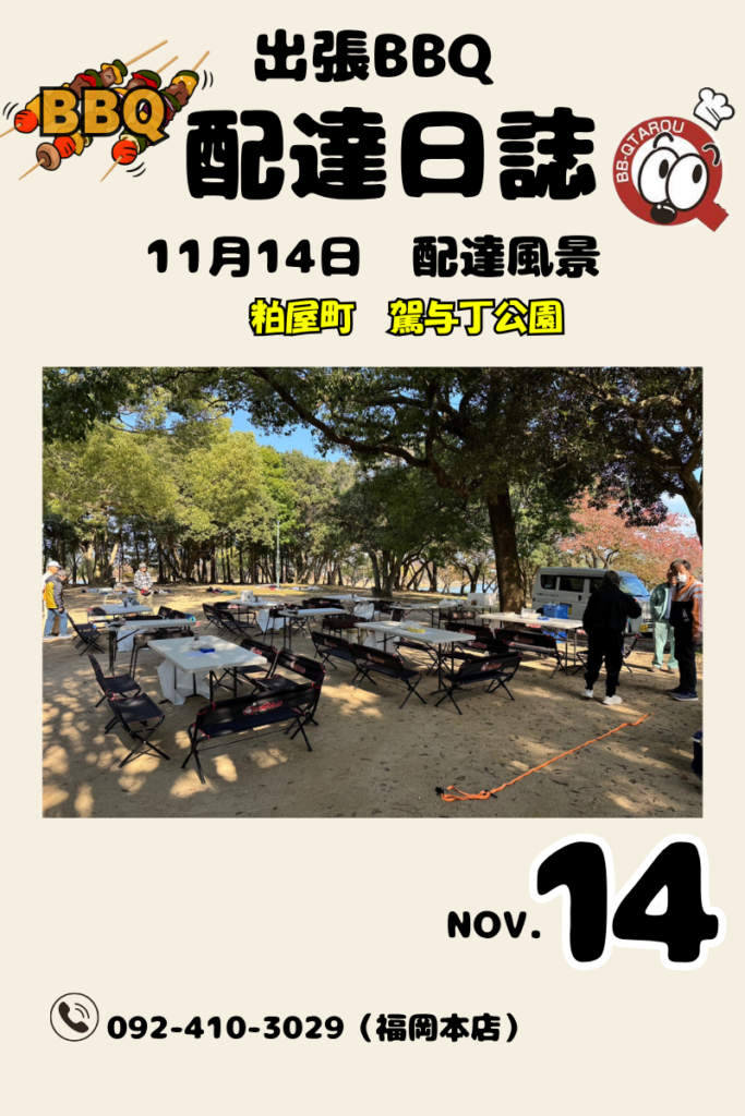 本日は、糟屋郡の人気スポット「駕与丁公園」にて、シルバー人材センター様 60名の団体BBQをお手伝いさせていただきました!