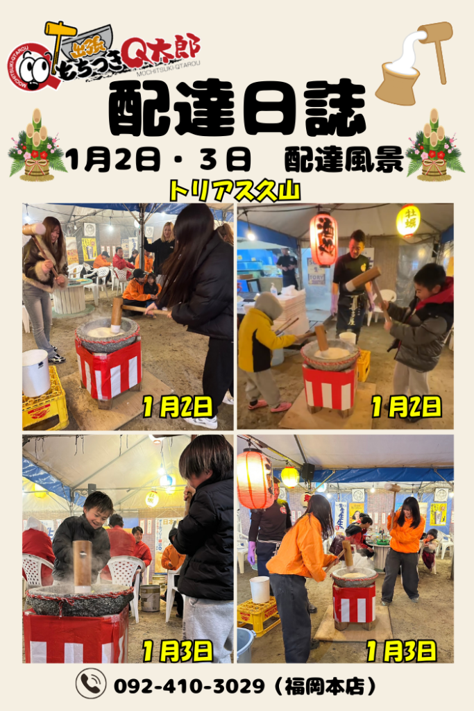 🎍 出張もちつきQ太郎 福岡本店|1月2日・3日 配達日誌