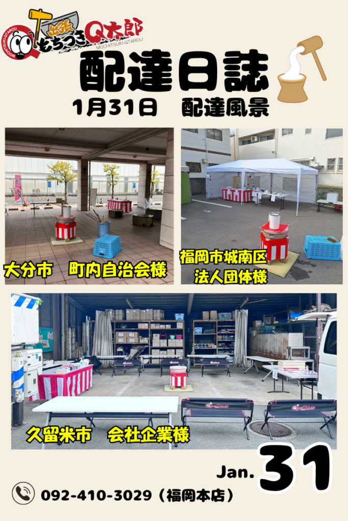 🎍 出張もちつきQ太郎 福岡本店|1月31日 配達日誌