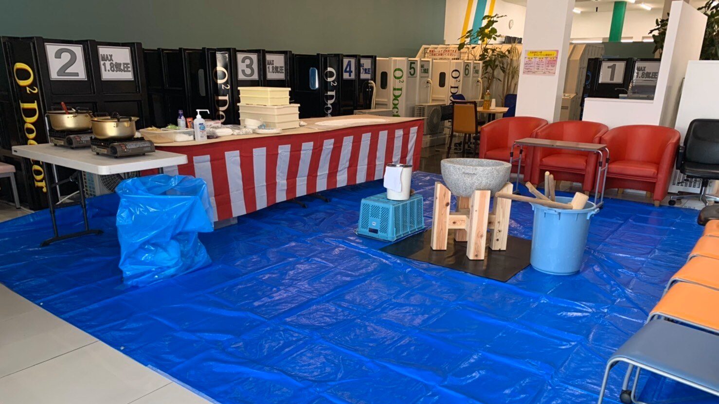 臼・杵・コンロ・釜戸・セイロ・衛生備品など必要な機材はすべて弊社が用意