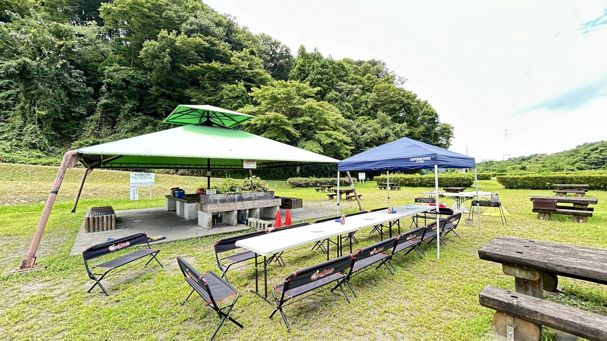 - 広々とした河川敷:グループや団体でも余裕をもって利用可能🏞️