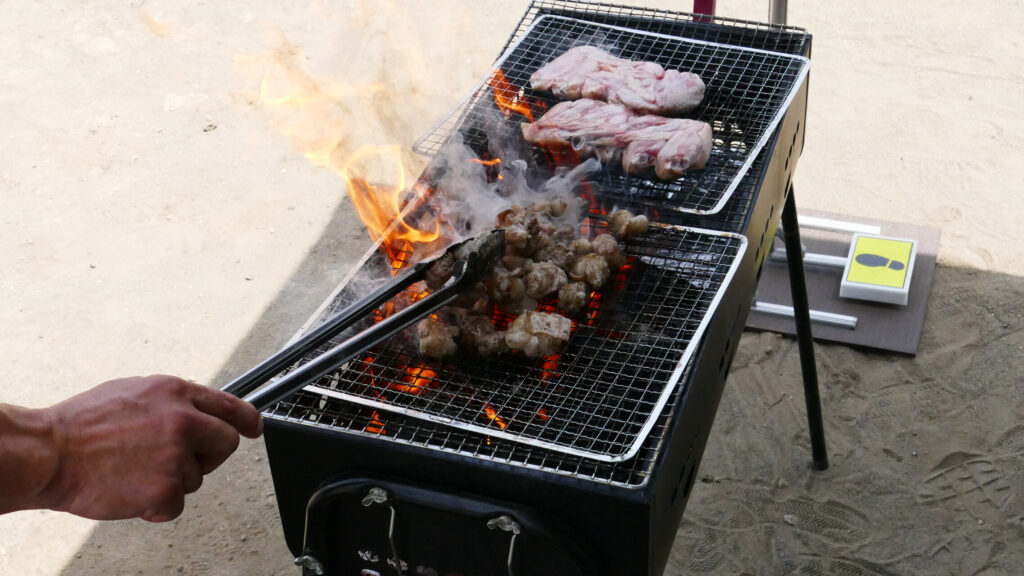 千秀センターでのBBQは、BBQ太郎の出張レンタルを使えば準備不要。公園の野外炉を活用しつつ、A4ランク国産牛ロースや鮮魚を含む豪華食材セットを楽しめます。スタッフが機材を設営し、火起こしから片付けまで対応。幹事さんも安心してイベントを進行できます。